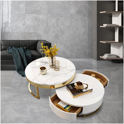 Moderno luxo mobiliário sala ouro espelhado redondo vidro top aninhamento mesa de café conjunto